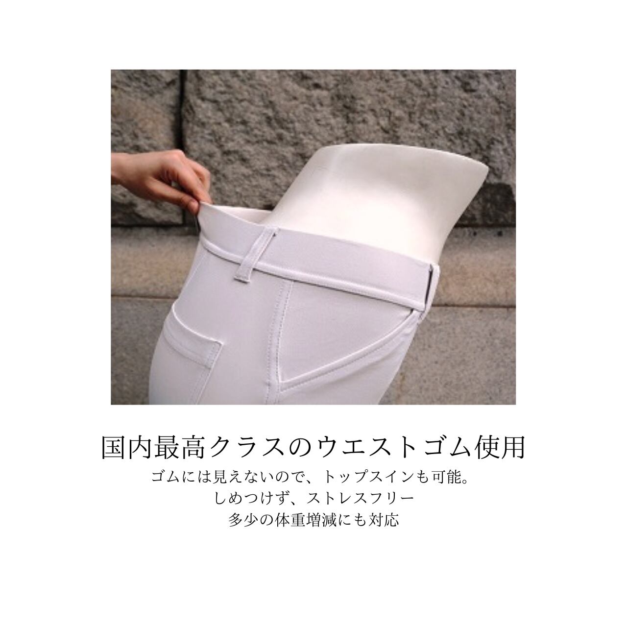 ●前:左右ポケット、後ろ:左右ポケット●ウエストゴム使用●ベルトループあり